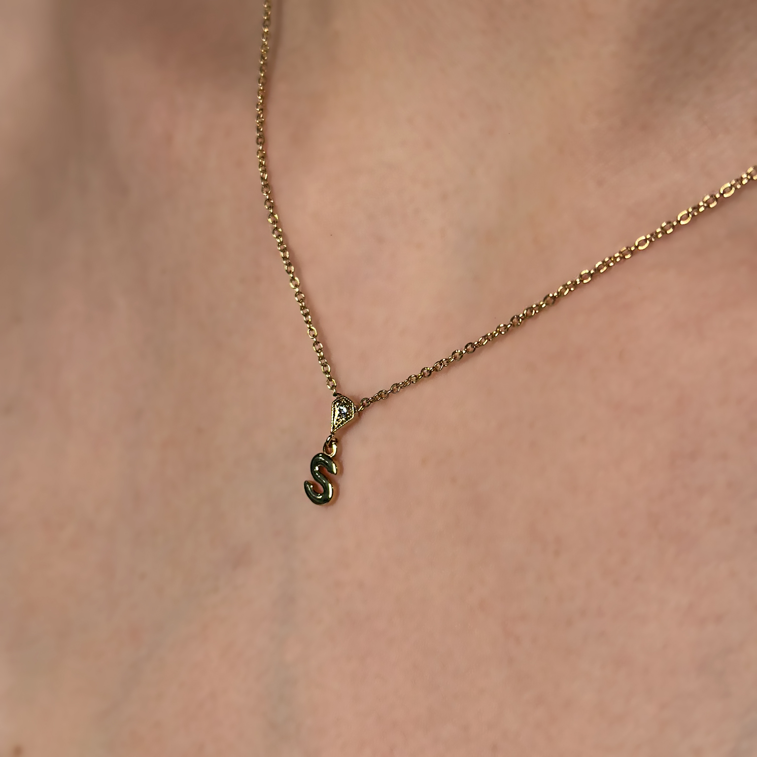 Girocollo con iniziale personalizzabile in oro giallo 18kt e diamante ct 0.03 G VS