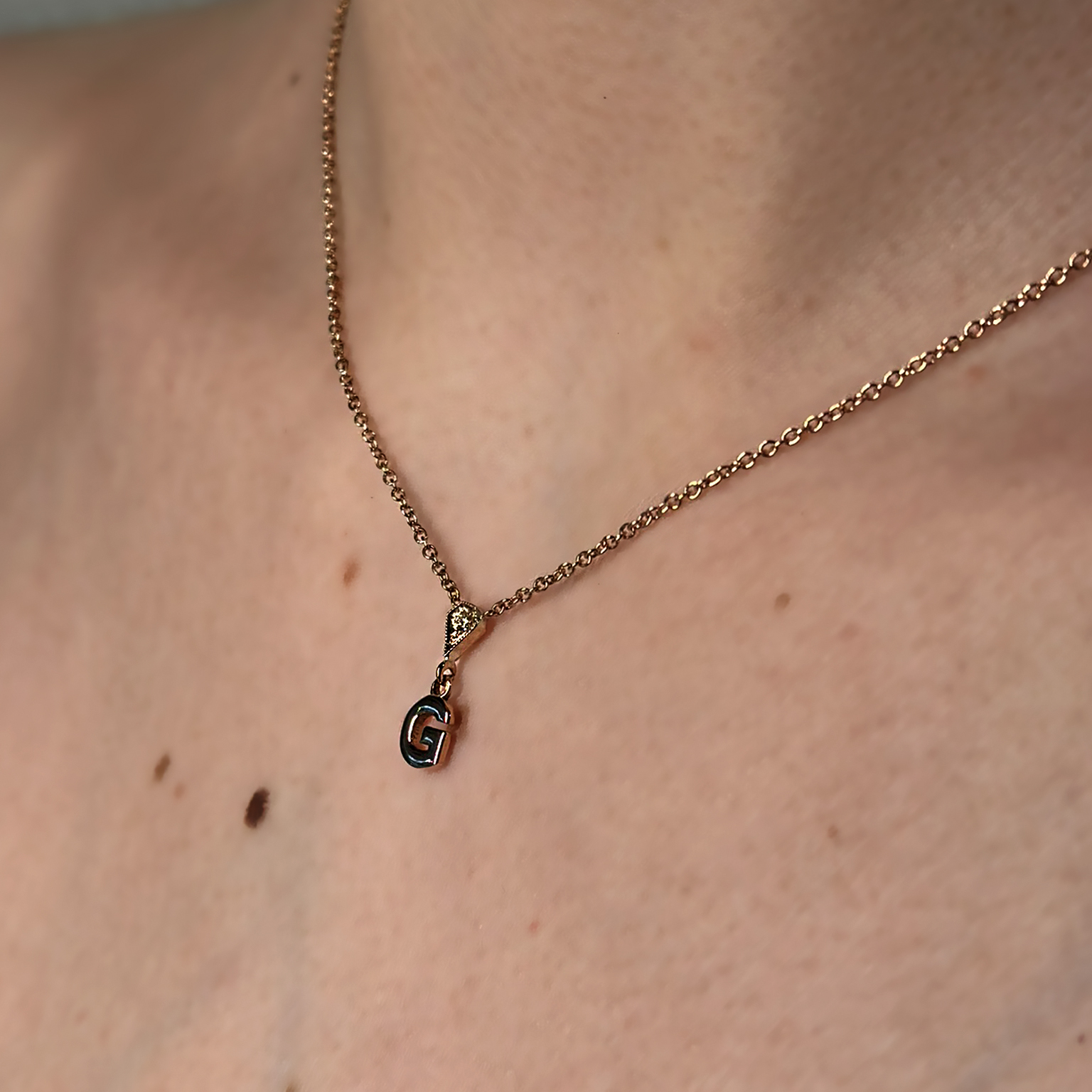 Girocollo con iniziale personalizzabile in oro rosa 18kt e diamante ct 0.03 G VS