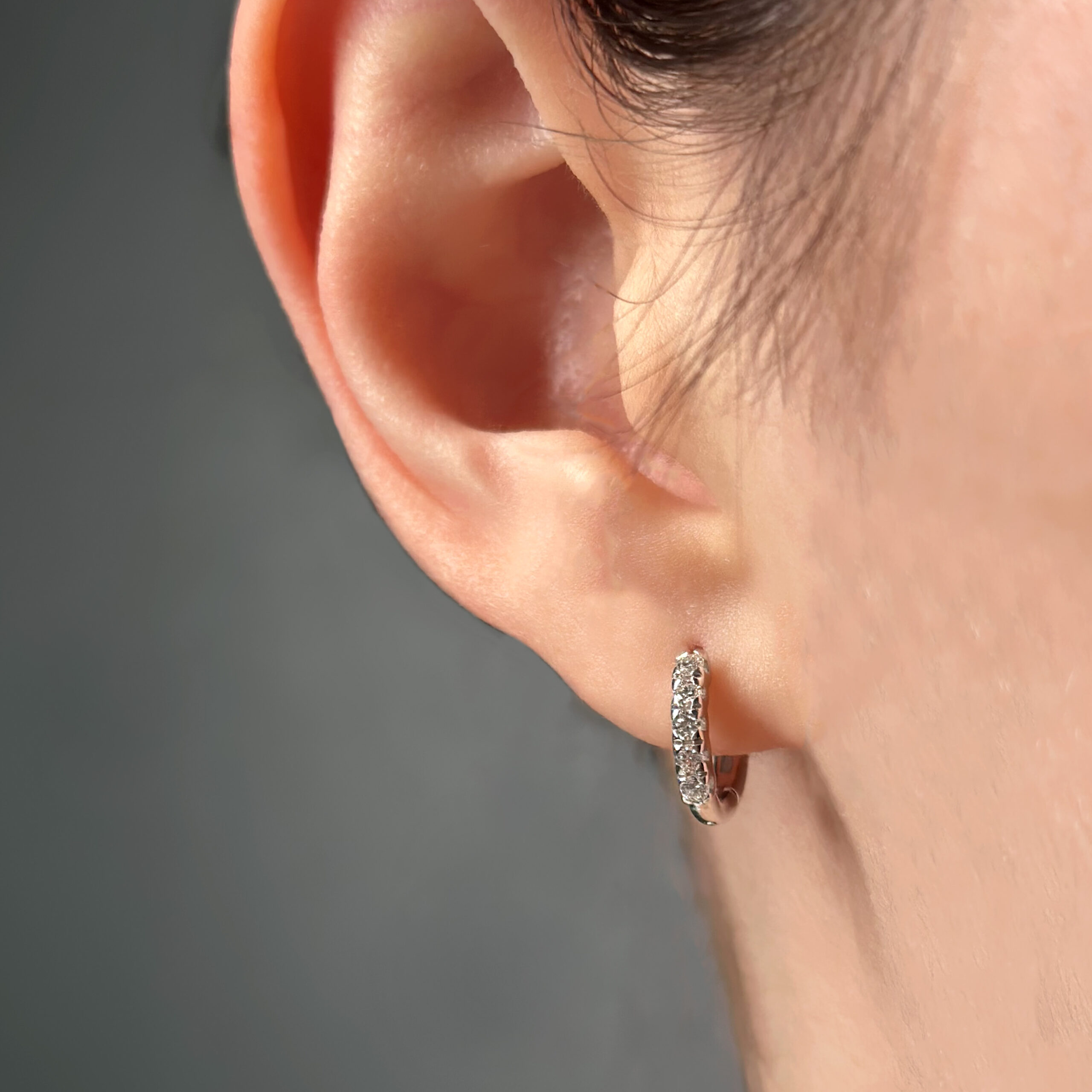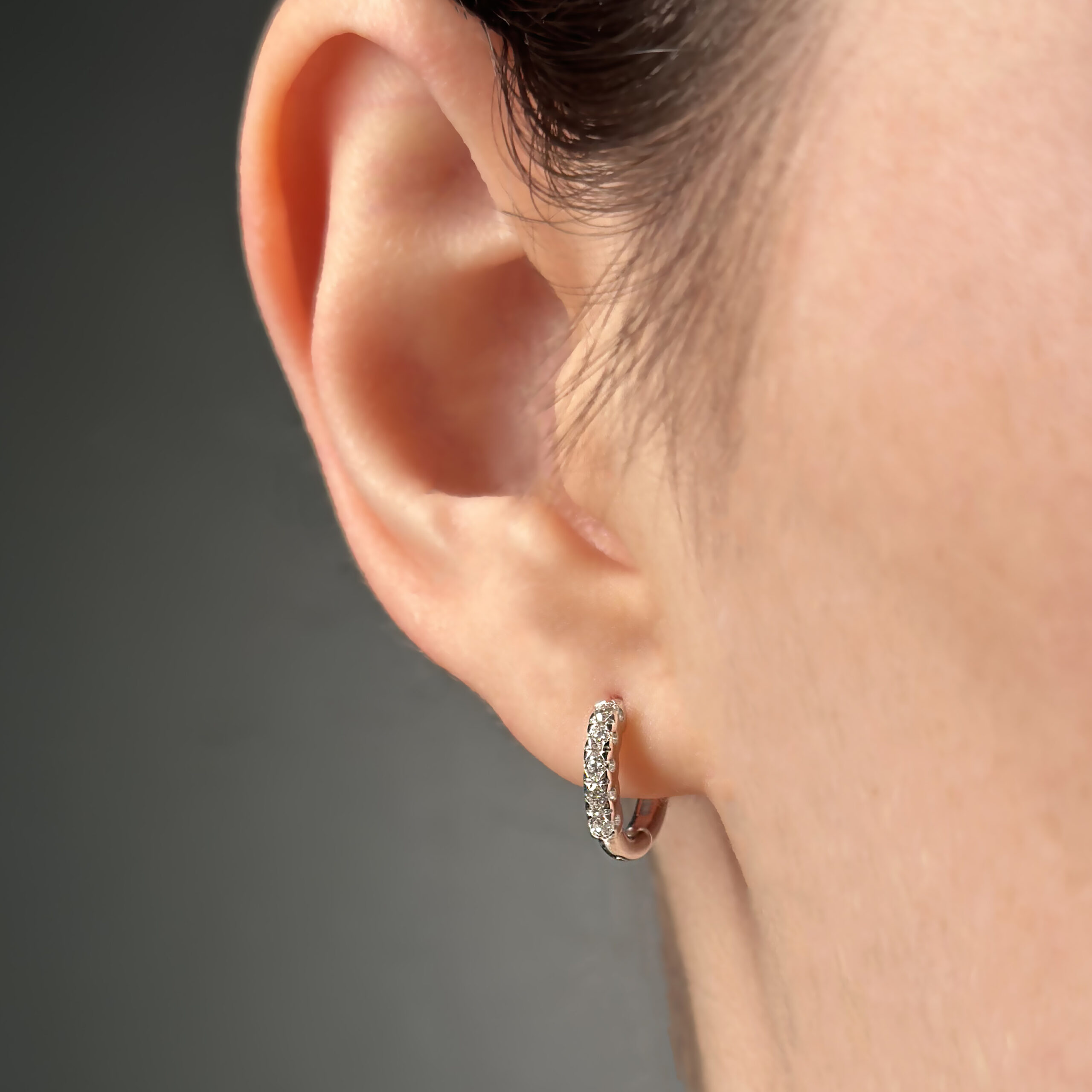 Orecchini singolo cerchietto in oro bianco 18kt con diamanti taglio brillante totale ct 0.13 Colore: G Purezza: VS