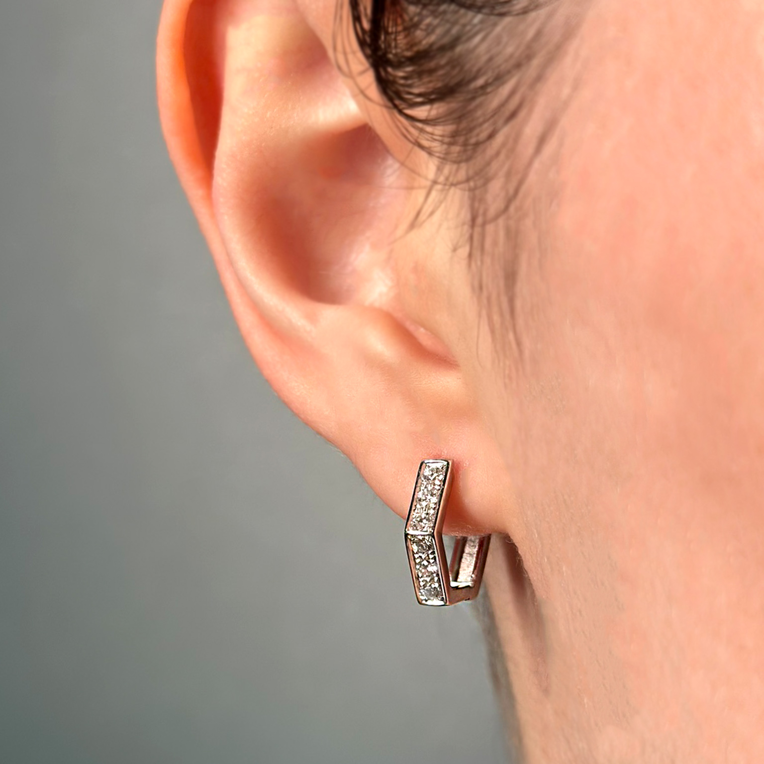 Orecchini Flavioro a forma esagonale in oro bianco 18kt con sei diamanti taglio brillante totale ct 0.38 colore G Purezza VS