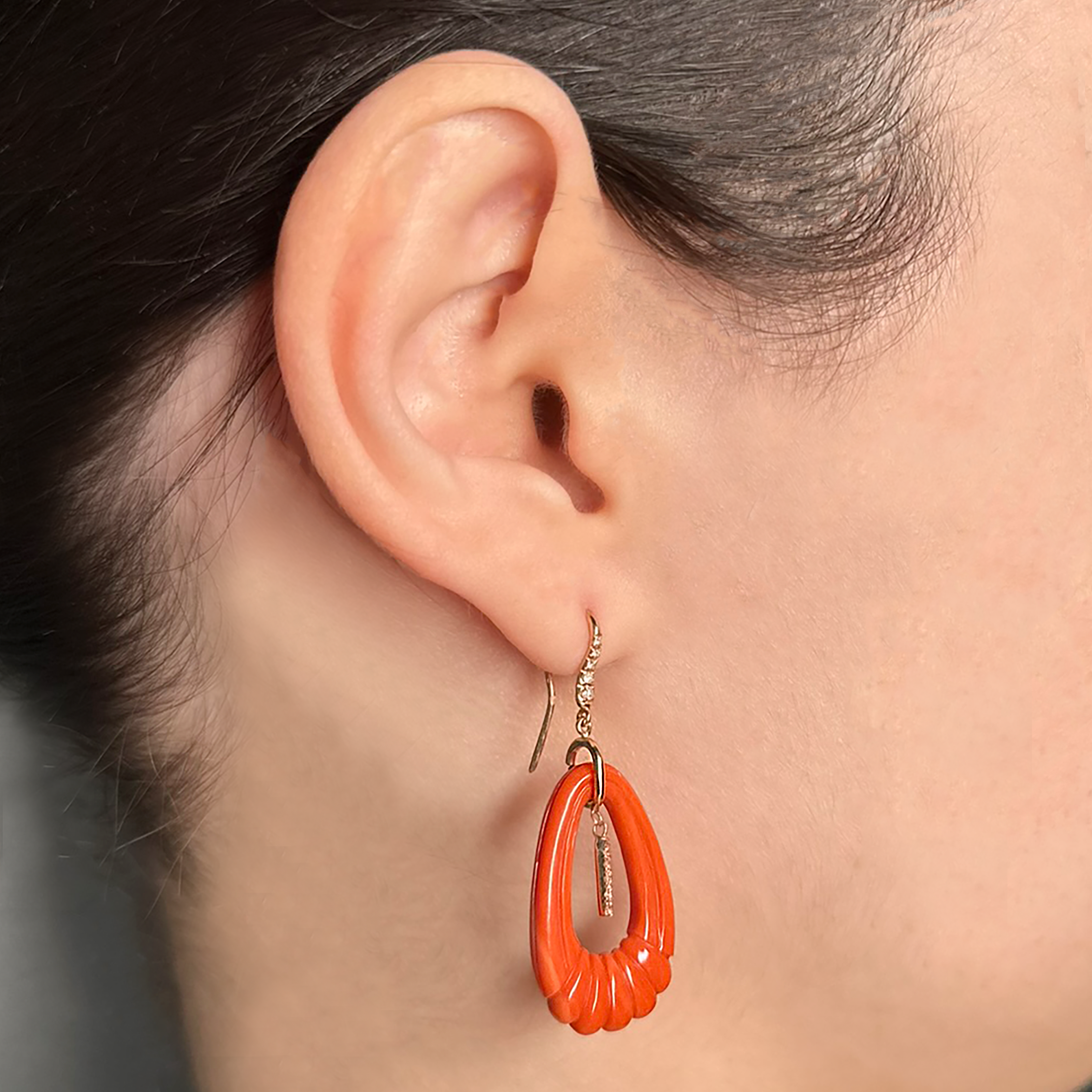 Flavioro Orecchini Oro 18kt Corallo e Diamanti ct 0.12 G VS