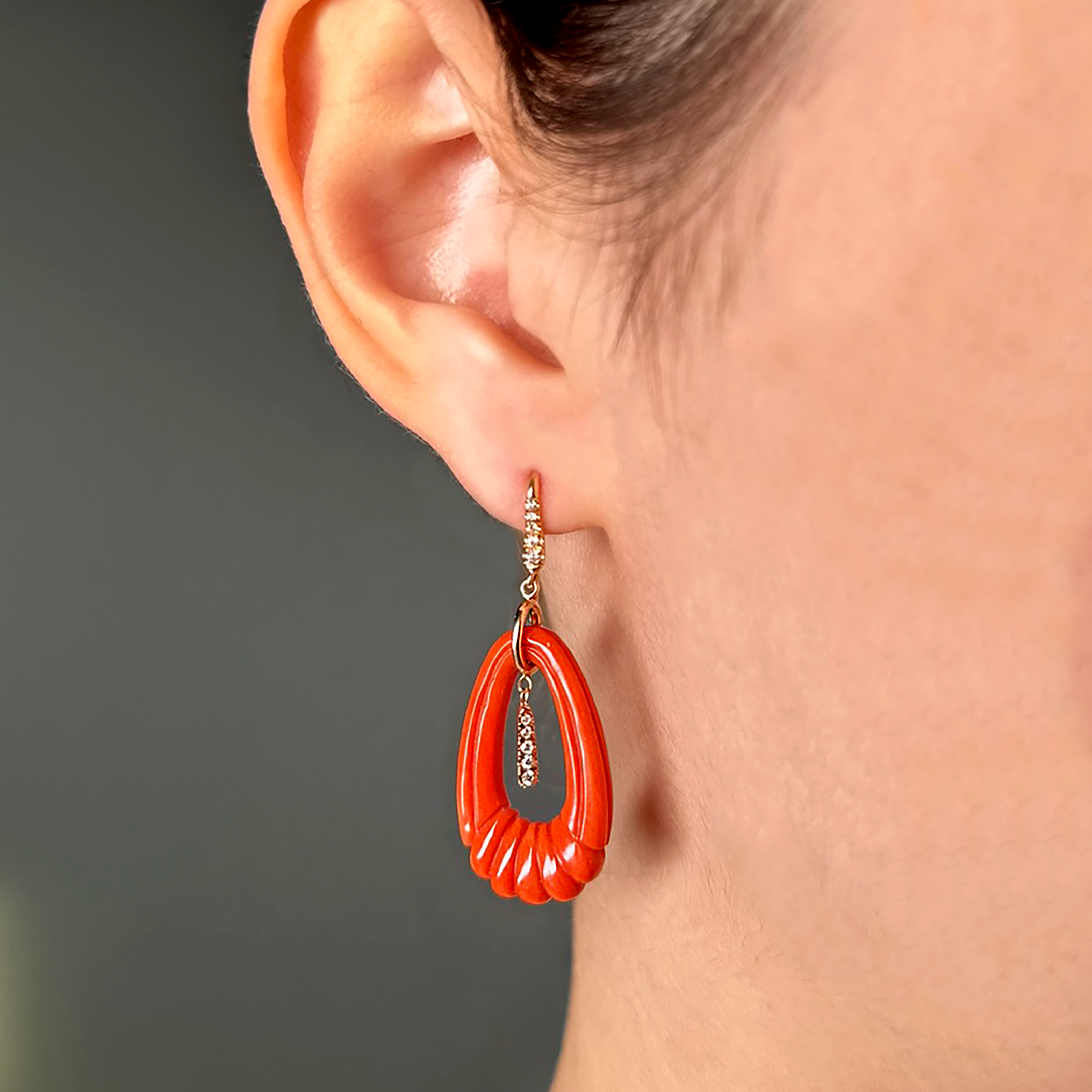 Orecchini in oro rosa 18kt con coralli e diamanti ct 0.12 G VS