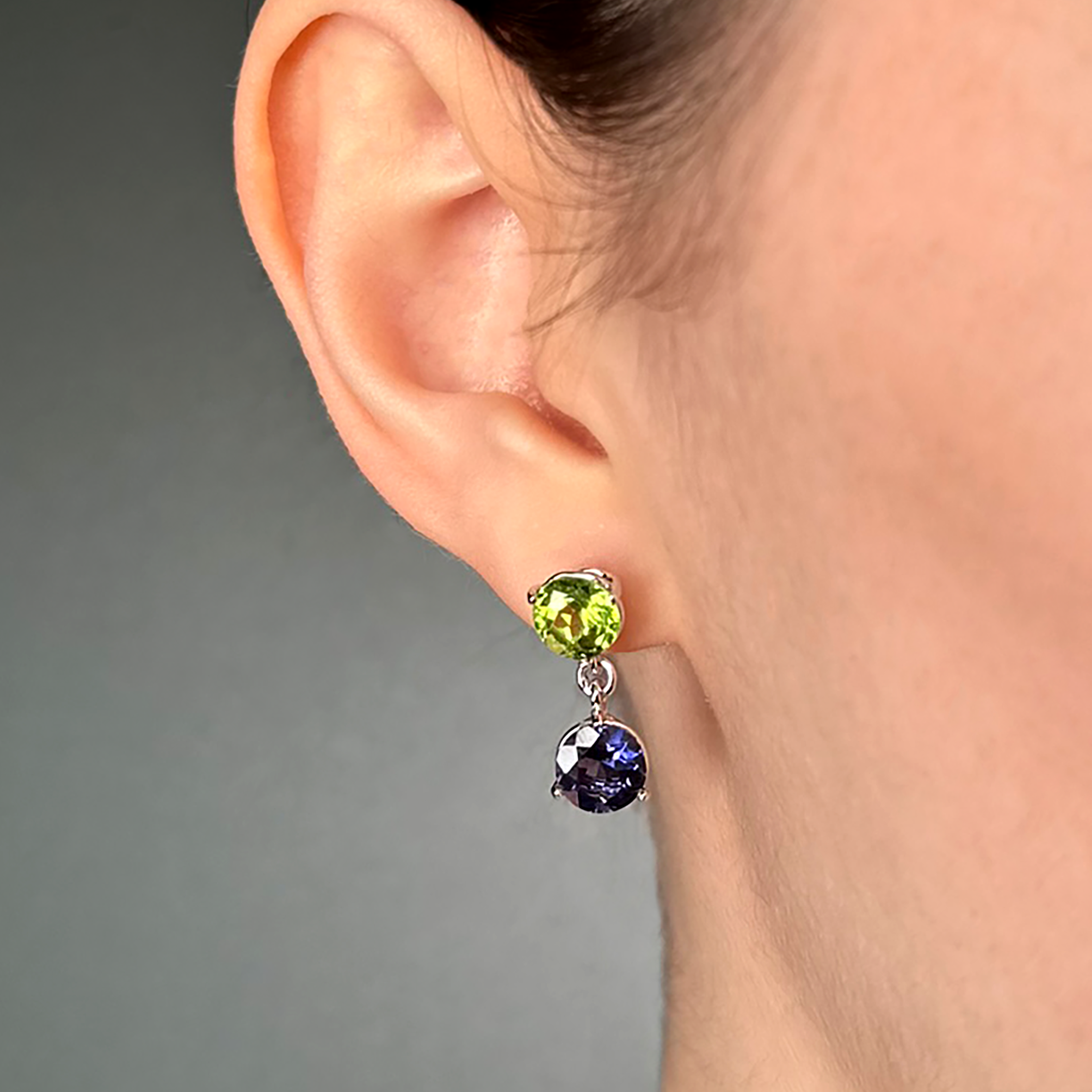 Orecchini in oro bianco 18kt con ioliti totale ct 2.24 e peridoti totale ct 3.06