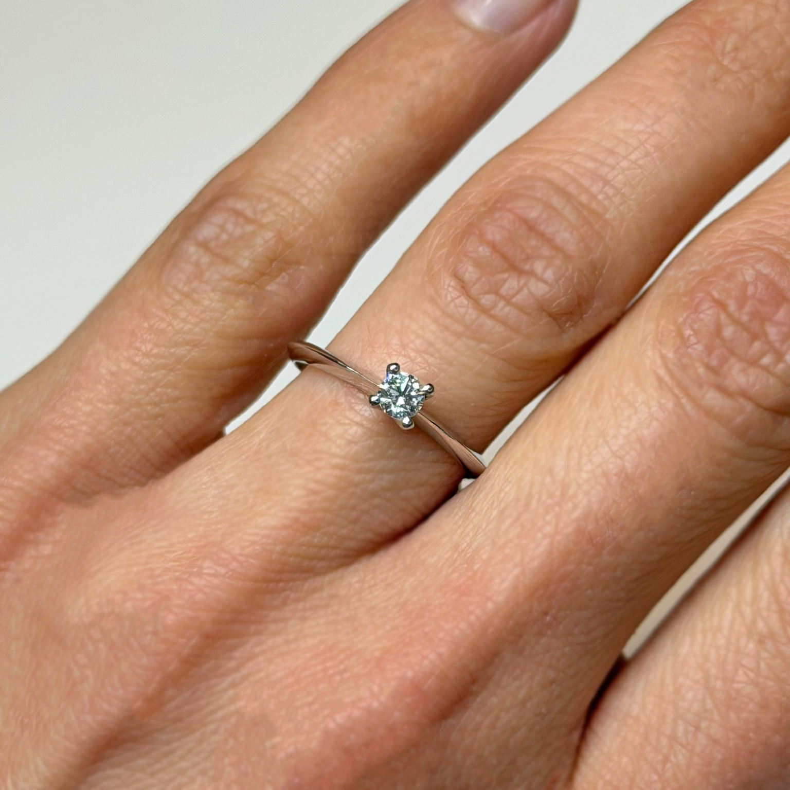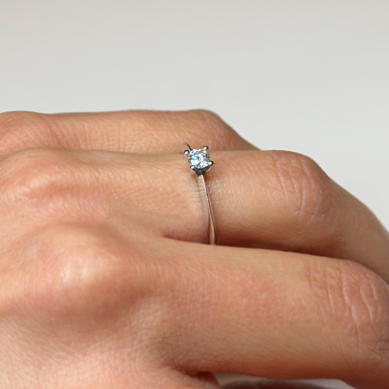 Anello Flavioro modello Solitario in oro bianco 18kt con diamante taglio brillante ct 0.20 Colore G Purezza VS