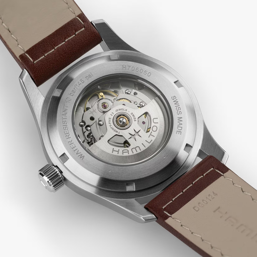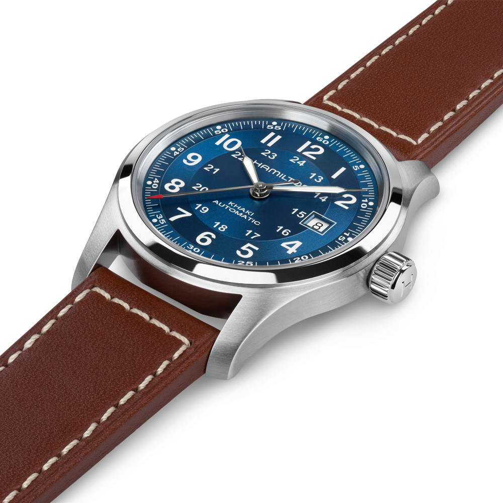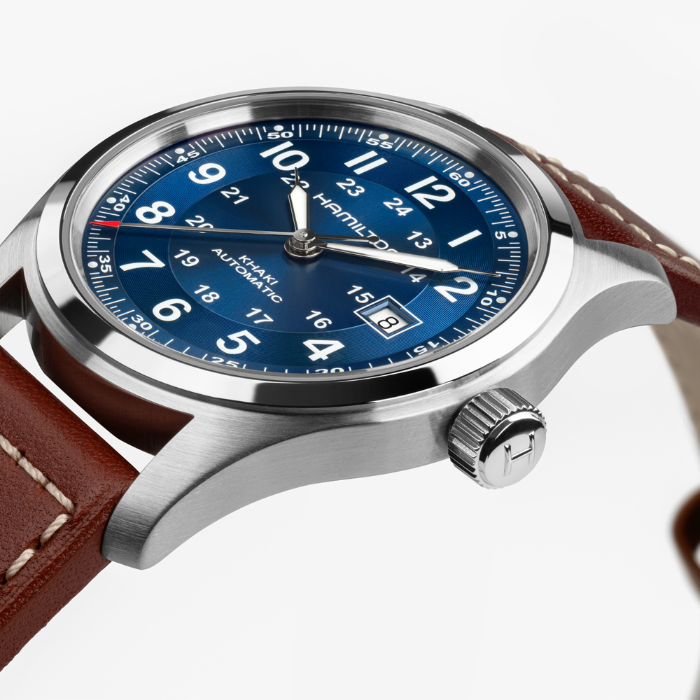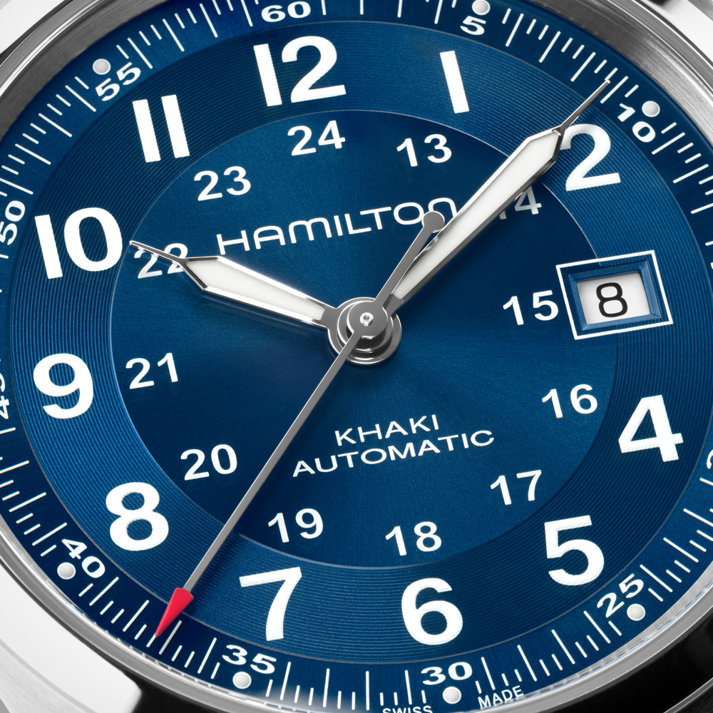 Ispirato all’originale orologio militare, il Khaki Field Automatic unisce tradizione militare e design contemporaneo in un modello versatile, pensato per i pionieri moderni. Combinando un quadrante blu navy finitura soleil con un effetto a spirale sull’anello delle ore, il quadrante riflette la luce aggiungendo texture e profondità. Progettato per l’azione e l’avventura, l’esclusivo calibro automatico H-10 offre fino a 80 ore di riserva di carica, per un orologio che non ti deluderà mai. Scopri la nostra collezione Khaki Field.