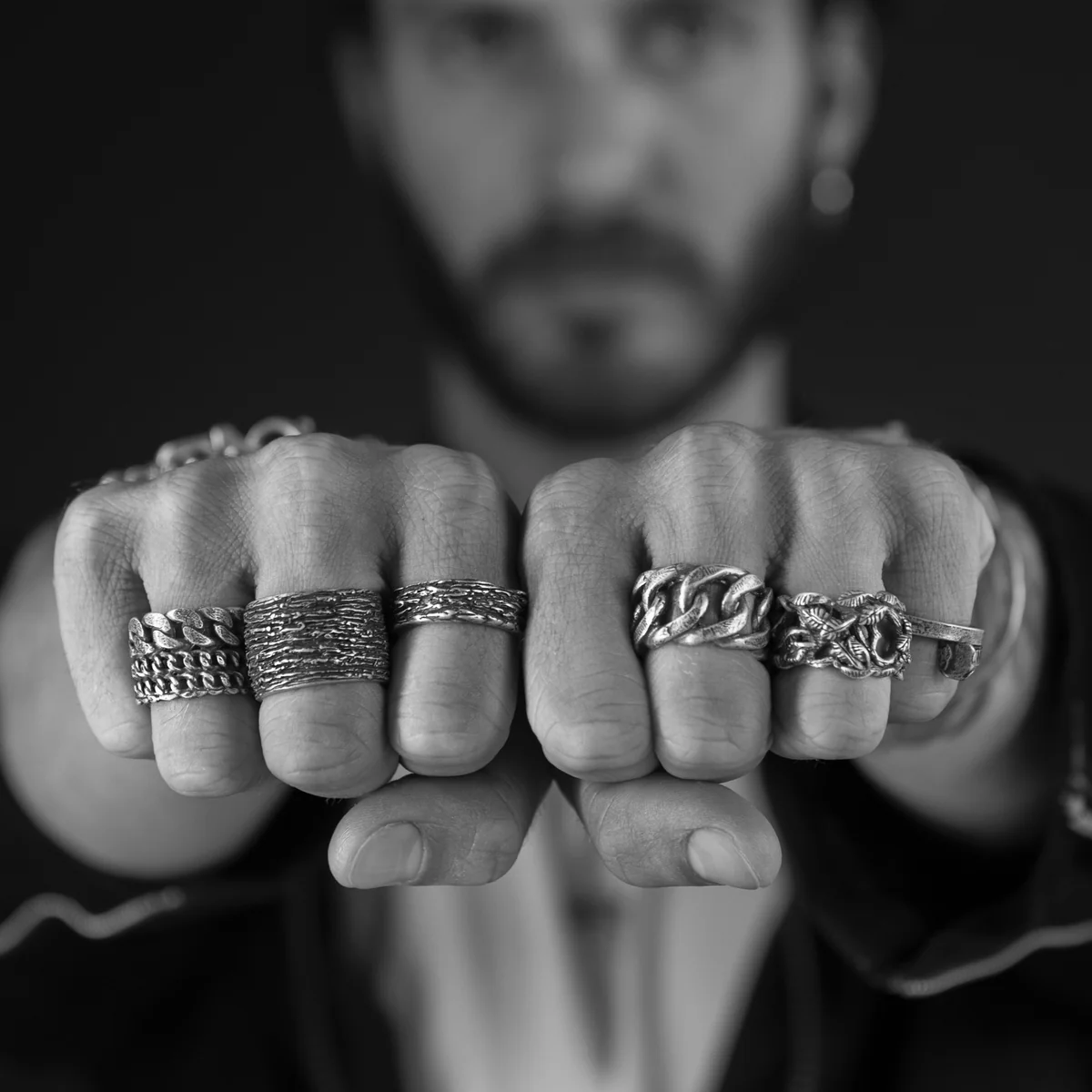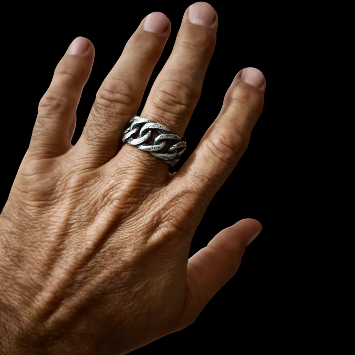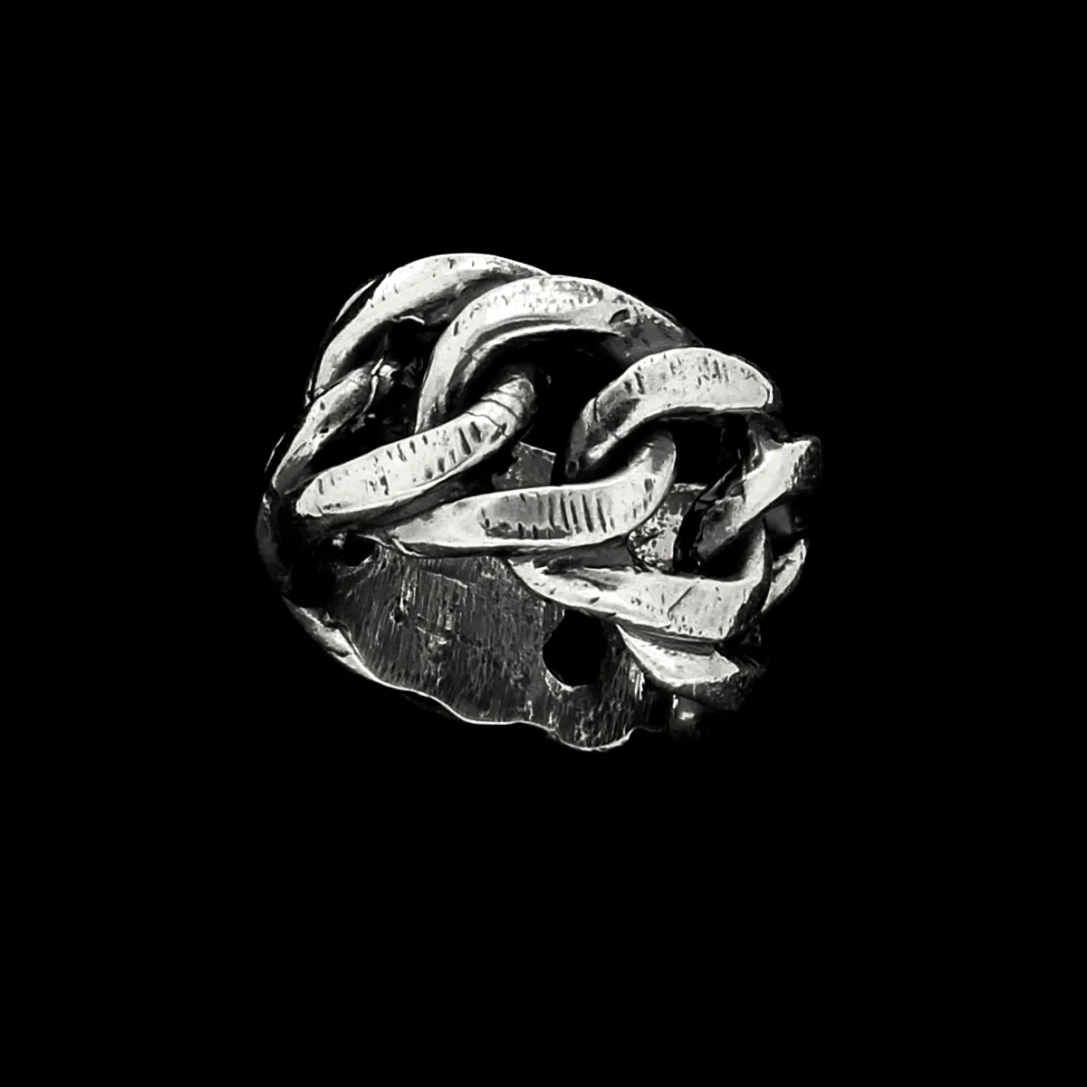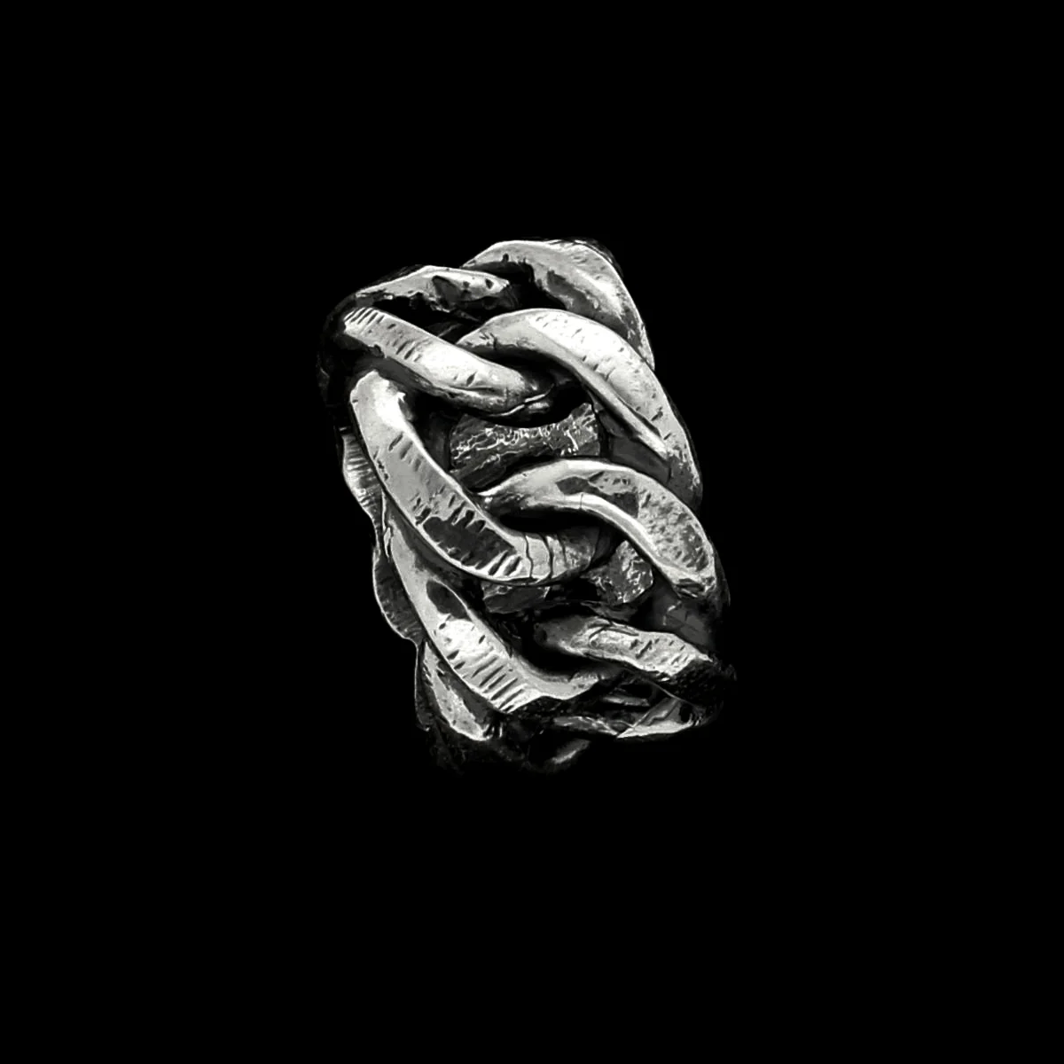 Materia Doppia è un anello a fascia costruito su una doppia catena rigida in Argento 925 brunito e lucidato al grezzo. Forte, tenace ma al tempo stesso delicato ed armonioso. Senza dubbio uno degli anelli Materia più carismatici. Finitura opaca, brunita e invecchiata.