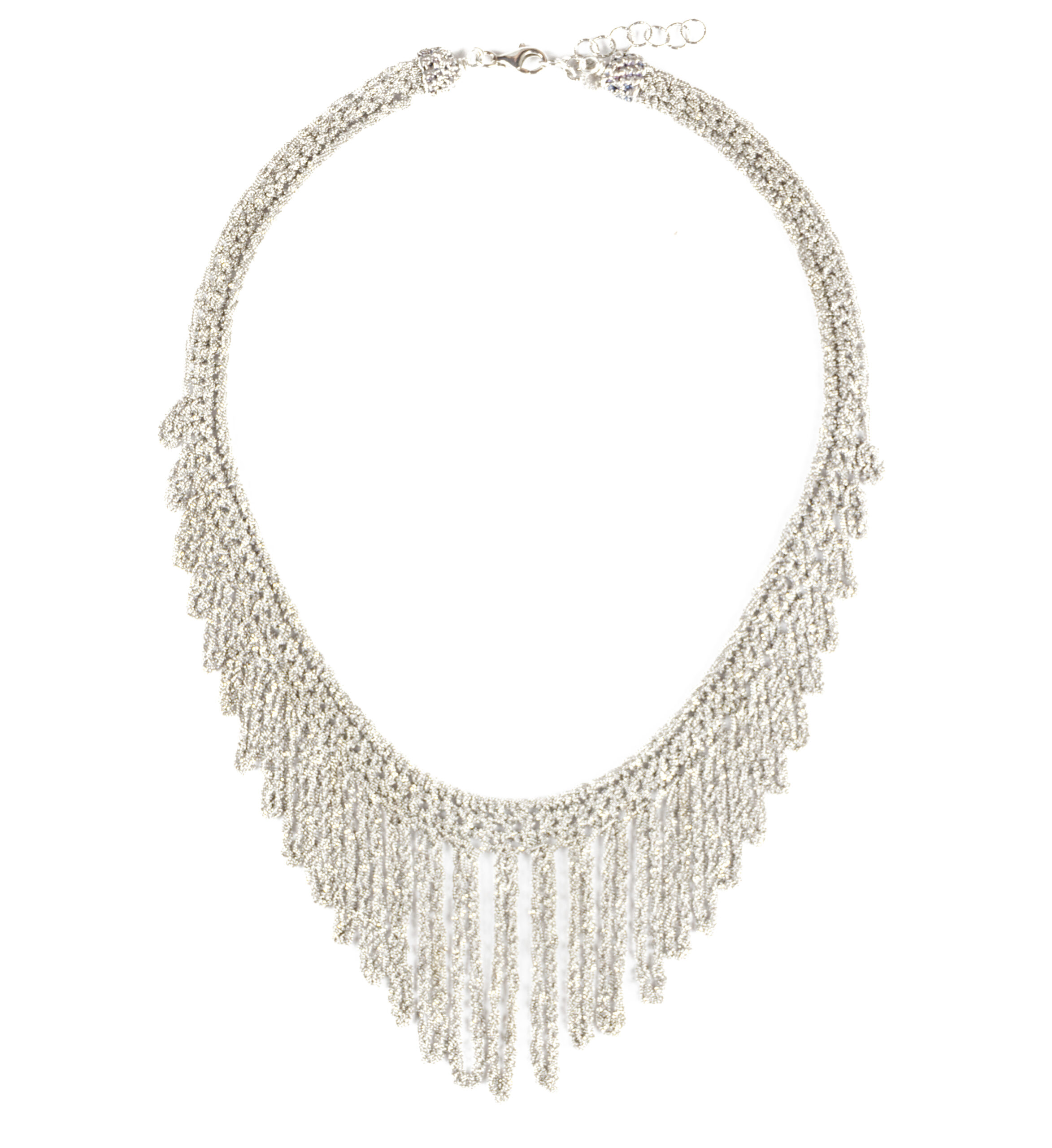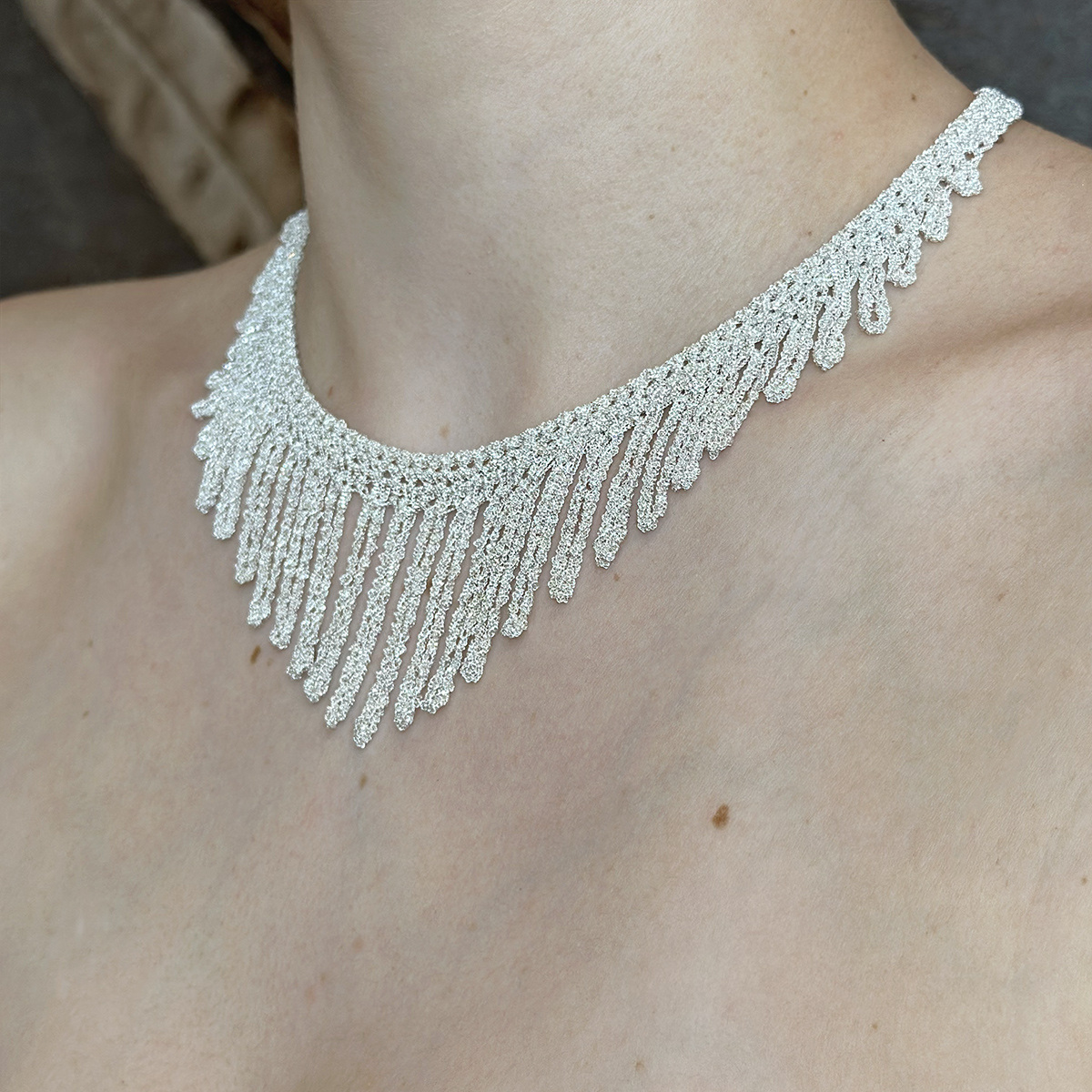 Dalla Terra del Fuoco alla Sicilia, le creazioni di Marcela Salvador seguono il fil rouge dei suoi spostamenti fisici e culturali e racchiudono tutto il know-how del suo percorso. In virtù del suo ricco background di fashion designer specializzata nel settore della maglieria, Marcela Salvador trasferisce le sue competenze nel gioiello, ecco che realizza trame e ricami sostituendo al filato in tessuto l’argento 925. Il concetto di Plata tejida (in italiano argento tessuto), rappresenta pienamente il concept alla base di queste creazioni uniche e realizzate con attenzione sartoriale. L’argento filato diventa la componente caratteristica delle sue collezioni di gioielli che vengono realizzati all’uncinetto e ai ferri prendendo spunto dai punti tradizionali o attingendo dalle forme naturali dei vegetali e delle rocce.