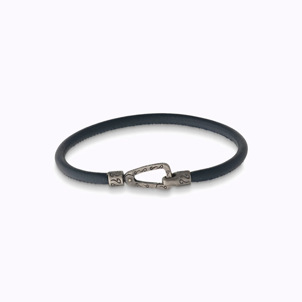 Questo bracciale Lash Single Leather abbina la morbida pelle blu a una chiusura in argento brunito, offrendo un look elegante e raffinato per gli uomini che apprezzano il lusso discreto. Perfetto sia per un abbigliamento casual che formale.