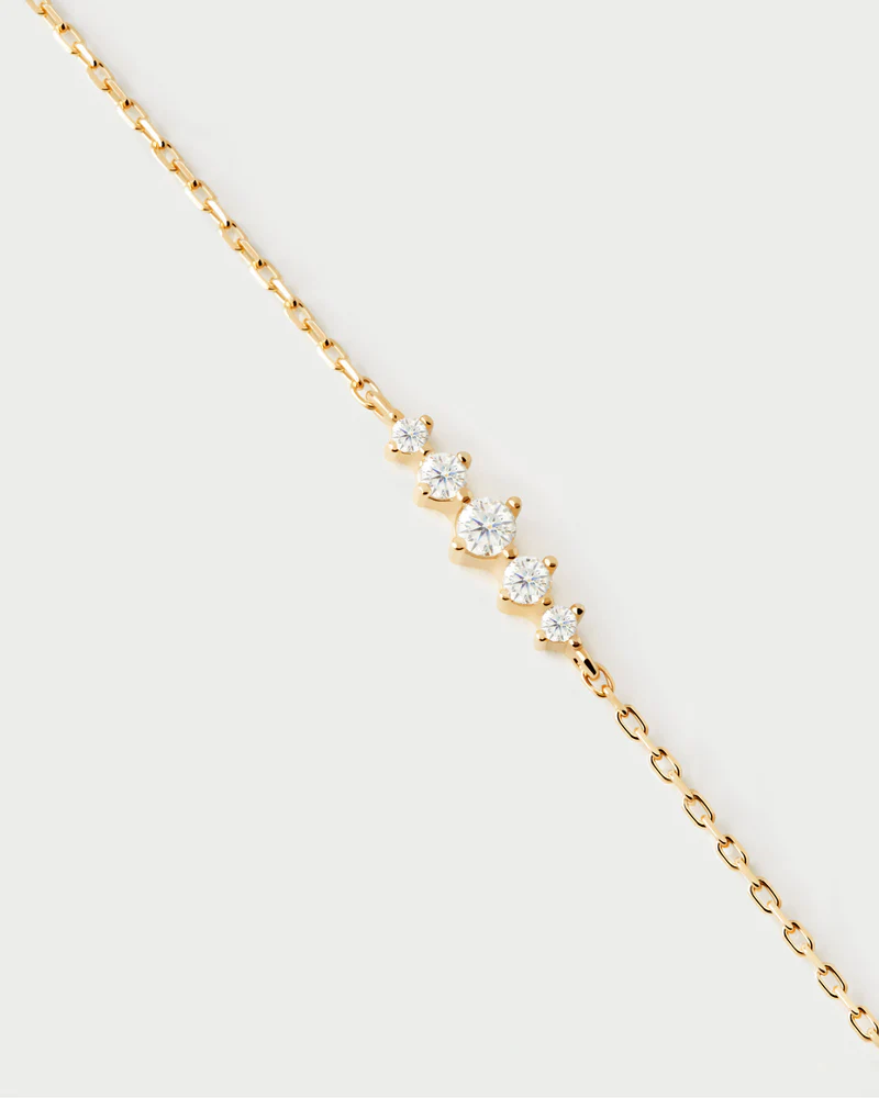 Bracciale elegante con una fila di cinque zirconi bianchi.