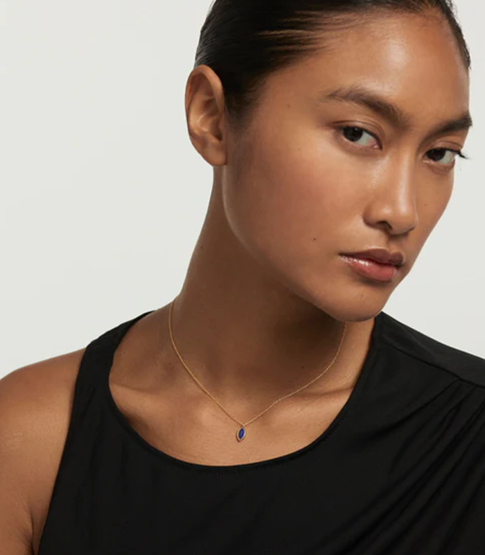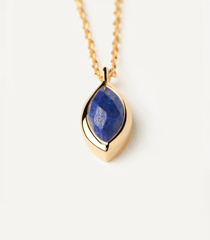 Collana a catena placcata in oro con ciondolo a forma di gemma blu taglio marquise