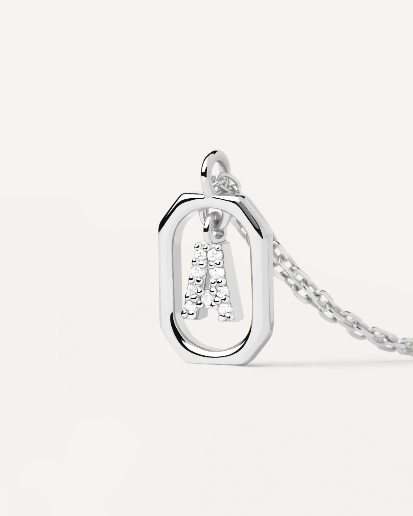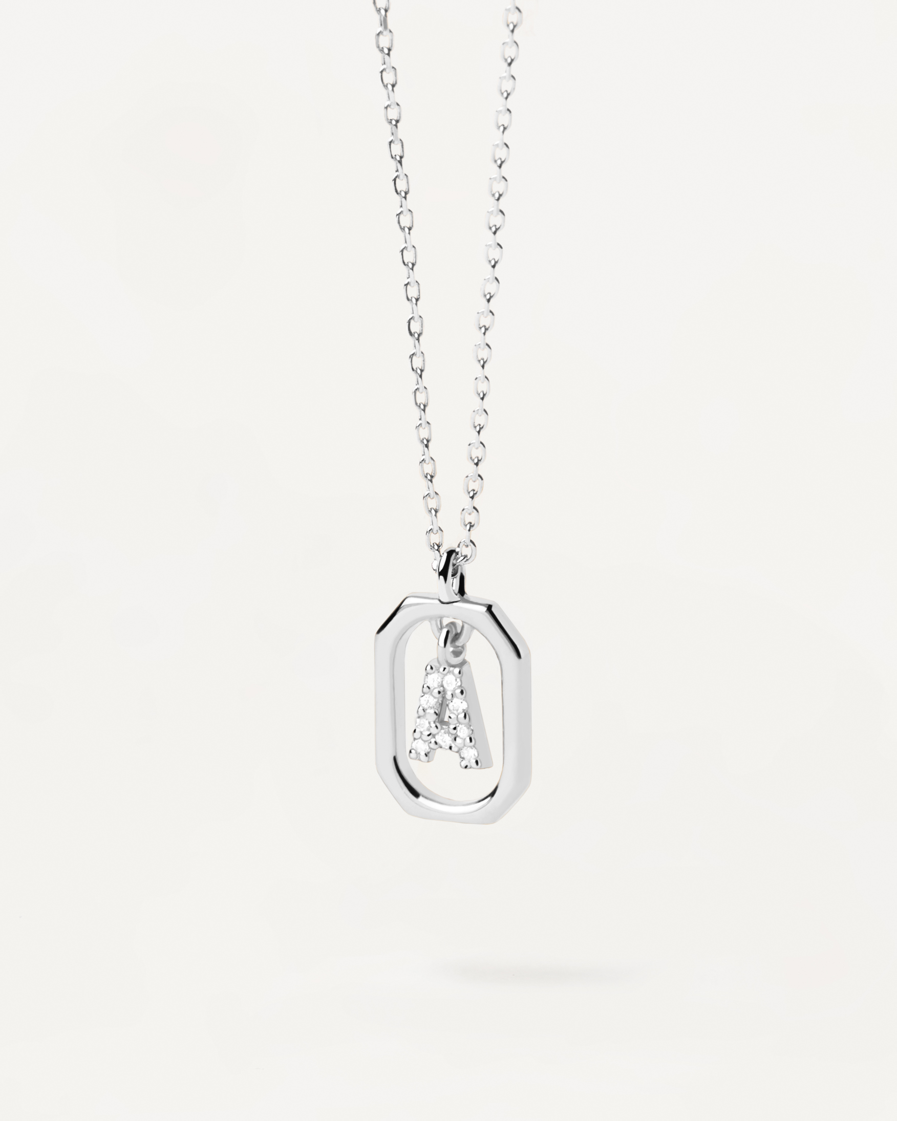 Ciondolo ottagonale piccolo in argento con iniziale A in zirconi