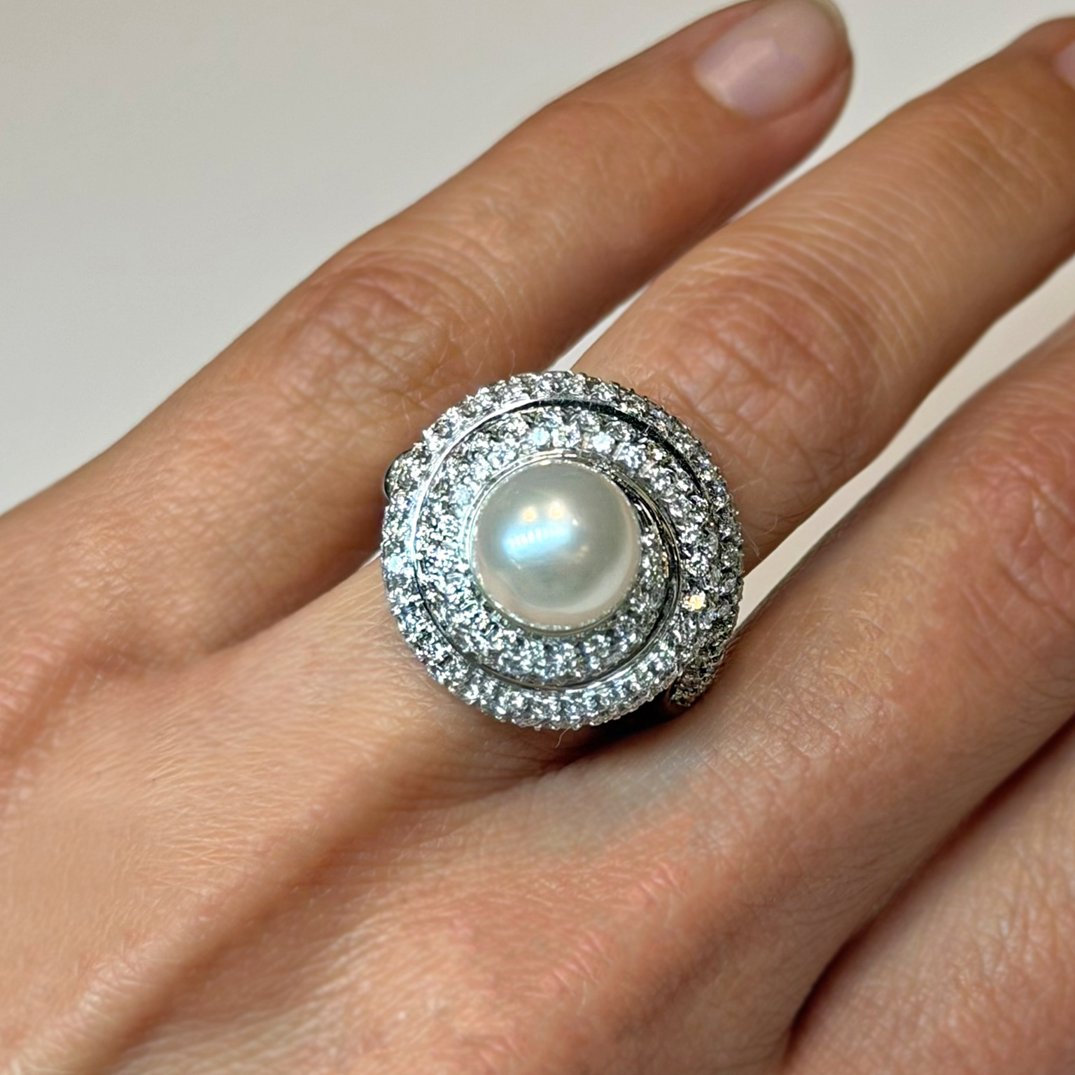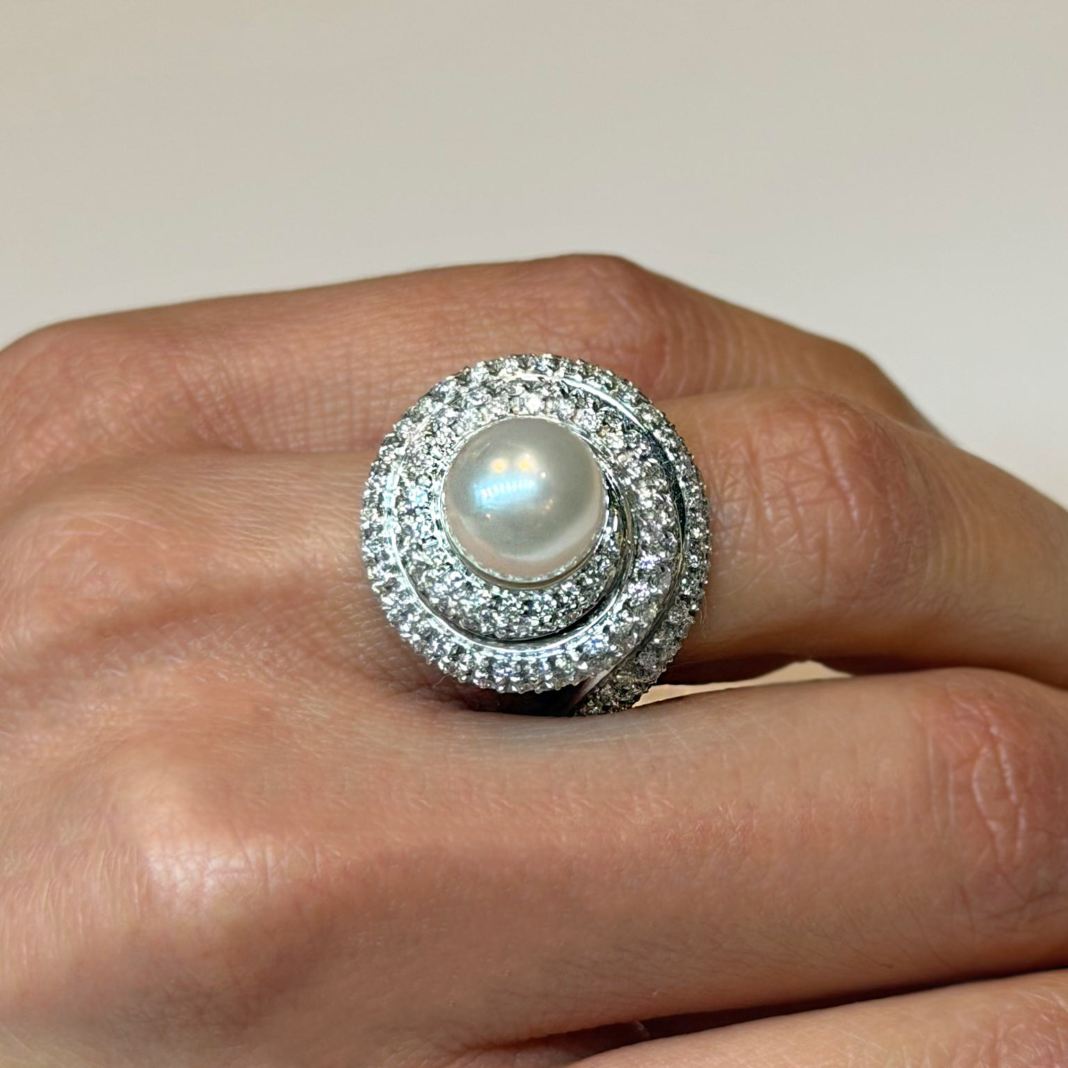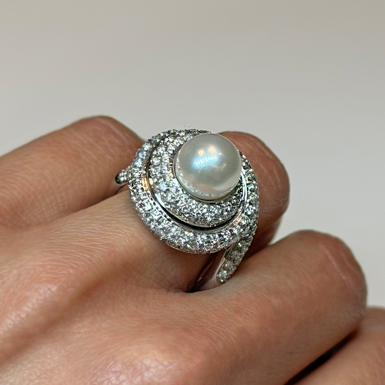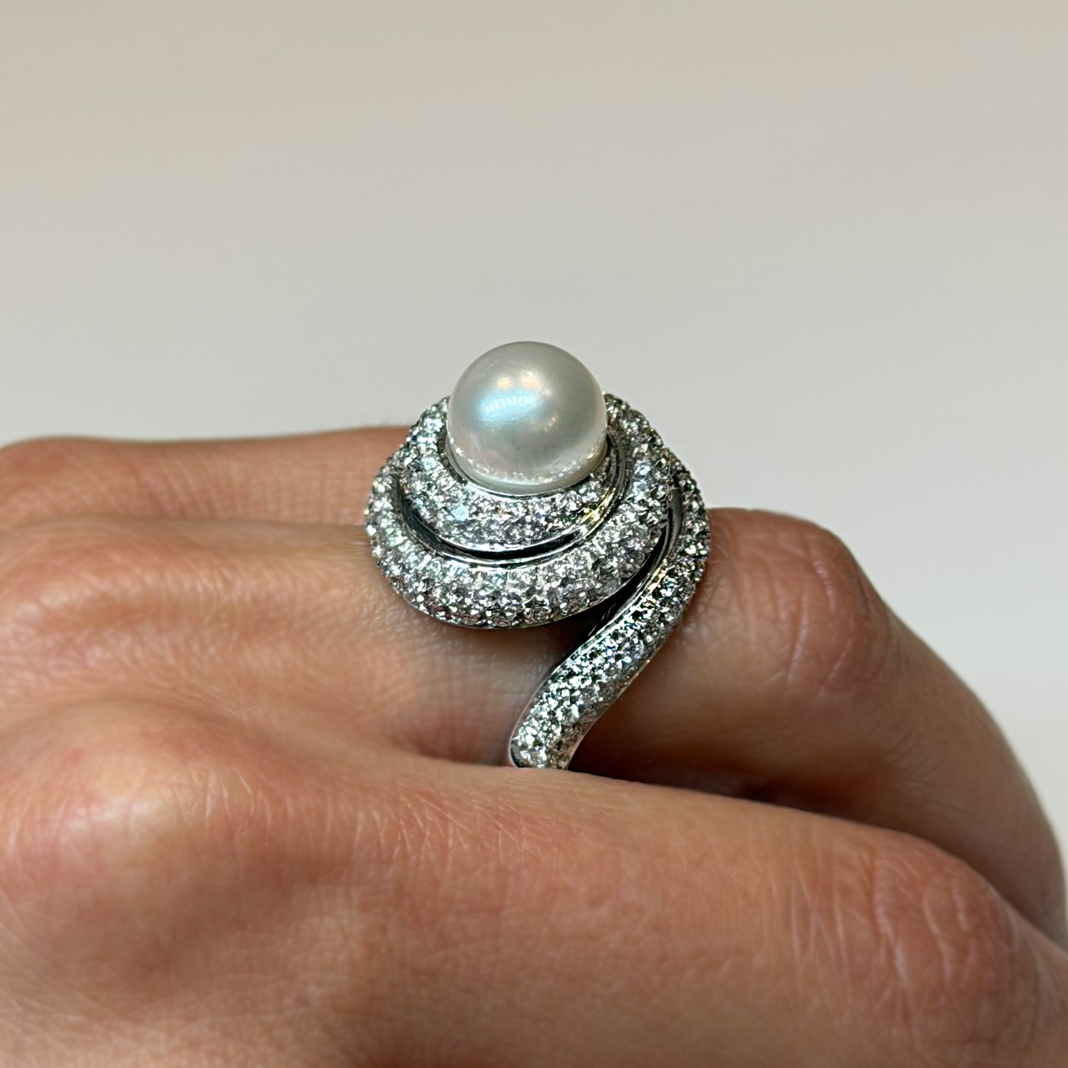 Anello Salvini in oro bianco 18 kt con perla 1.20 gr e brillanti ct 1.61